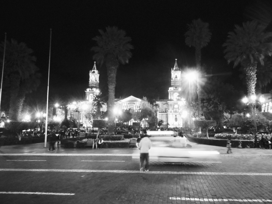 Salimos del museo y decidimos ir a la Catedral de Arequipa para entrar y verla por dentro. Hicimos una corta parada en Cusco Coffee donde me compré un chocolate caliente y utilizamos el internet. Había misa en la catedral, así que nos quedamos en la parte de atrás observando la arquitectura de la iglesia. Como dato curioso, hay una imagen del diablo tallada en madera y creo que esa catedral es la unica iglesia en el mundo con el diablo adentro.