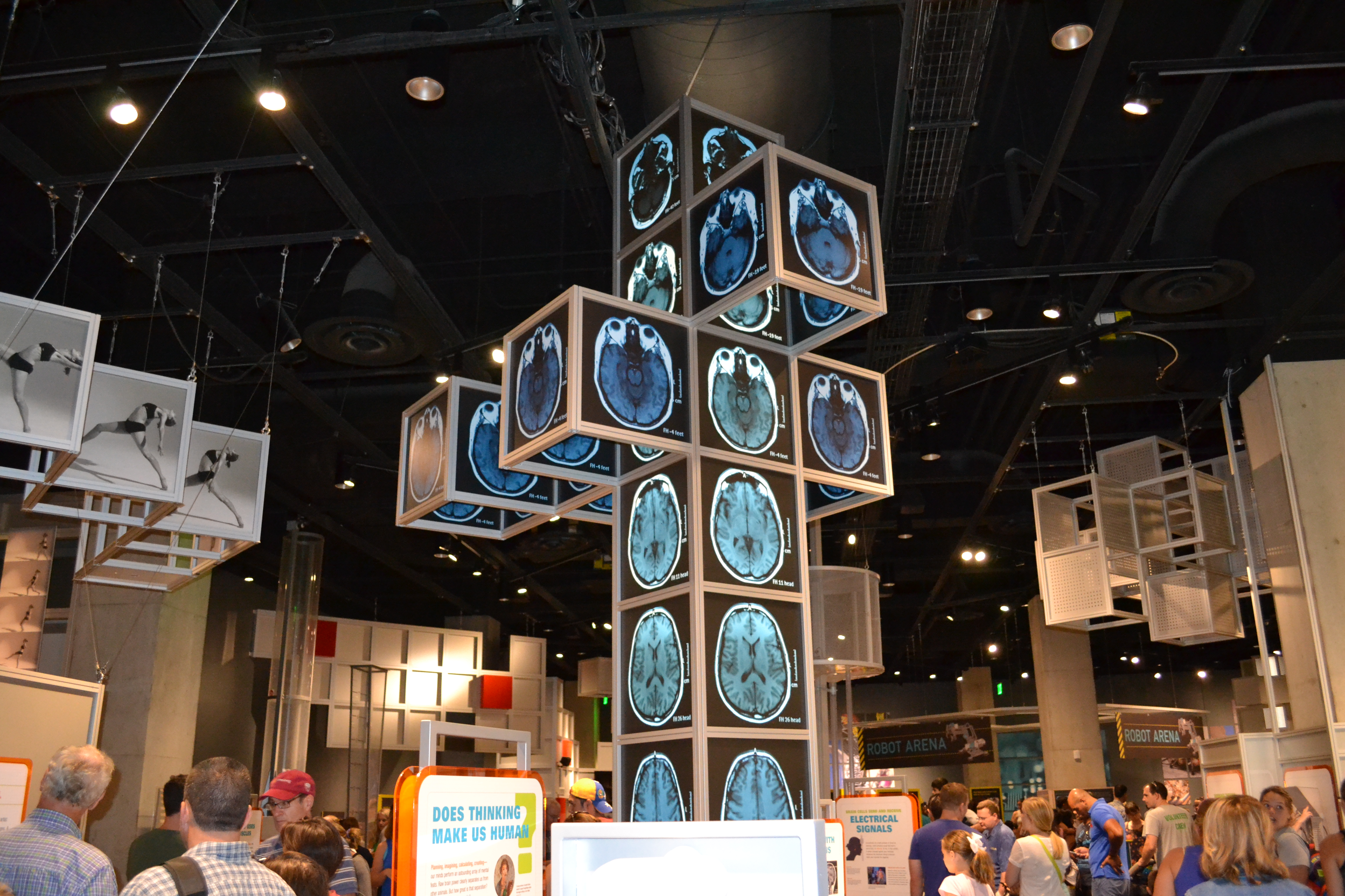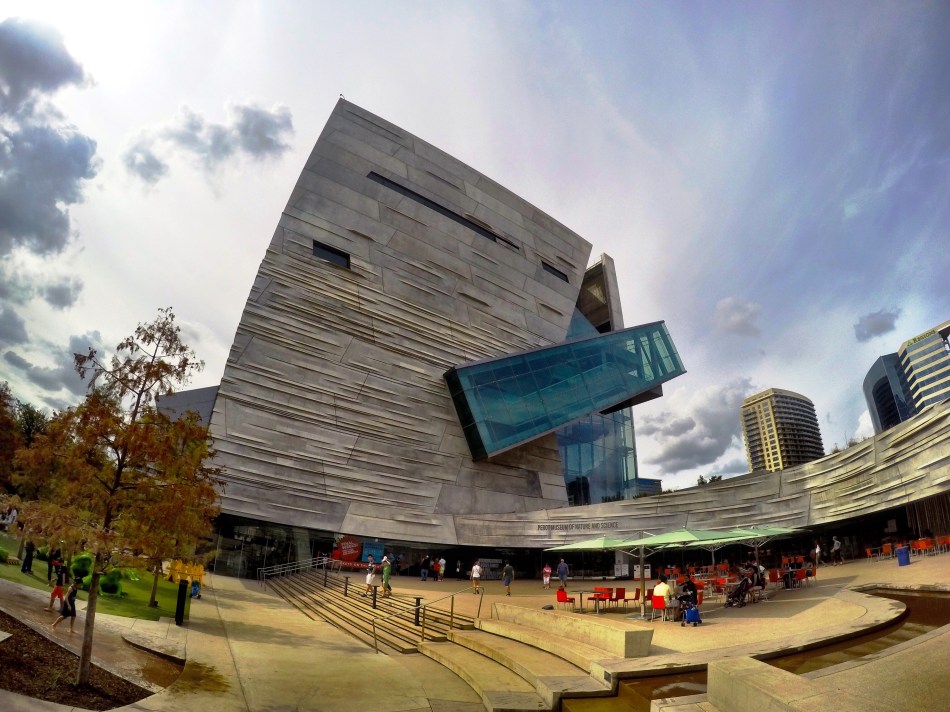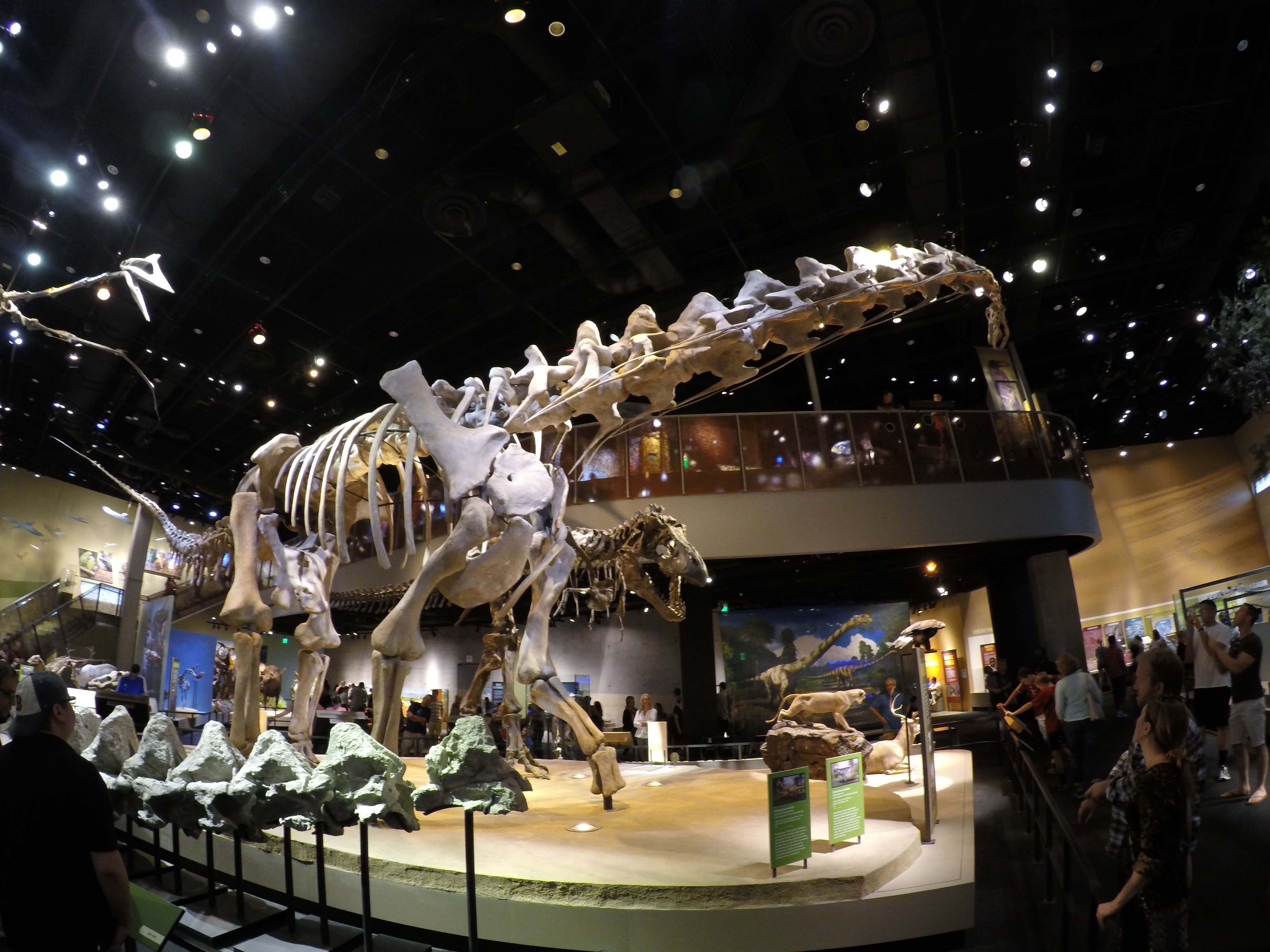 Saliendo de la torre paramos en Ferris Park para ver la fuente. Luego seguimos caminando y vimos el Hard Rock Café de Dallas pero estaba cerrado por una actividad privada. Continuamos hasta llegar al Perot Museum of Nature and Science. y lo primero que hice fue ir a la cafetería a comprarme un botella de agua pues la temperatura estaba sobre los 100F (30C) y estaba sediento. Este museo consiste de dos edificios, uno localizado en Victory Park y el otro en Fair Park. Nosotros visitamos el principal, que es el que está localizado en Victory Park. El museo tiene forma de cubo, y parece como si flotara. Desde afuera se puede ver, a través de un cristal con forma diagonal, la escalera eléctrica que une varios de los pisos. Cuenta con 11 exhibiciones permanentes y un cine 3D en la que vimos la película Walking With Dinosaurs 3D. Como parte de las exhibiciones hay fósiles de dinosaurios, mamíferos disecados, un área de tecnología, pájaros, deportes, el cuerpo humano, minerales, el sistema solar, y otras mas.