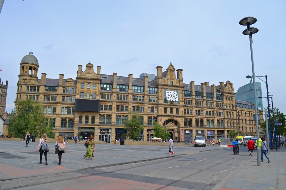 Como Manchester es una ciudad relativamente pequeña, decidimos que íbamos a recorrerla caminando. Salimos del apartamento y caminamos hasta St. Peter’s Square con la intención de ver la Manchester Central Library. Los alrededores estaban en proceso de remodelación y aunque había una pancarta que decía que la librería estaba abierta, por el poco tiempo que teníamos, decidimos no entrar.