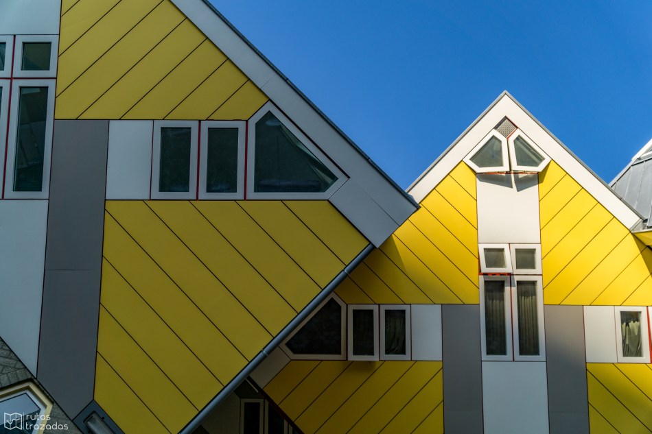 Ya con la barriga llena salimos de Markthal, y justo al otro lado del Binnenrotte Centrum Markt vimos dos estructuras súper interesantes. Una de ellas el Pencil Tower y la otra las Kubuswoningen o Casas Cubo. Las Casas Cubo son un conjunto de 32 casas innovadoras diseñadas en el 1984. El arquitecto giró 45° el cubo convencional de una casa y lo emplazó sobre pilares con forma hexagonal. Todas las casas están habitadas menos una, que está abierta al público y que por supuesto visitamos.