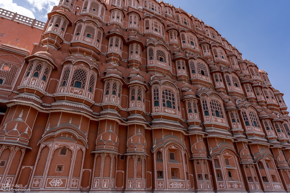 Hawa Mahal o el Palacio de los Vientos es el punto de referencia más distintivo de Jaipur. Es un edificio color rosado que el Maharaja Sawai Pratap Singh mandó a construir en el 1799 para permitir a sus esposas observar la vida cotidiana a través de unos pequeños huecos. En el palacio hay un pequeño museo, que abre de sábado a jueves, que exhibe pinturas tamaño miniatura y reliquias.