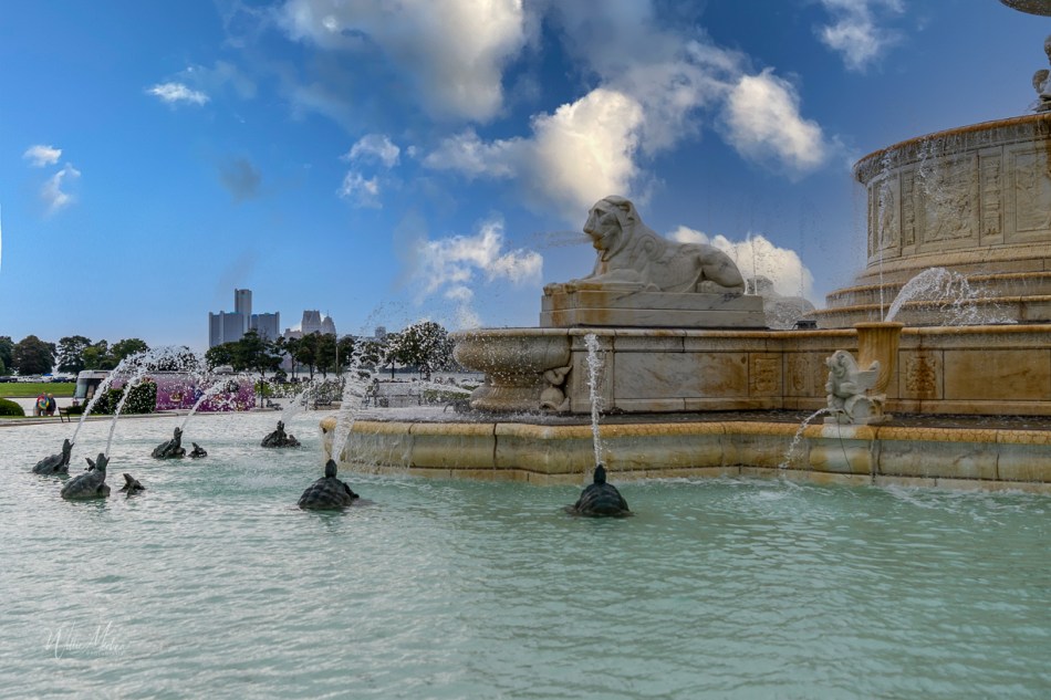 El último lugar que visitamos en la isla fue la fuente James Scott Memorial Fountain. El controversial James Scott le dejó $200,000 a la ciudad de Detroit para una fuente en homenaje a sí mismo. Su padre le dejó una fortuna considerable a Scott, quien invirtió en bienes raíces en Detroit. Según los contemporáneos, Scott jugaba y contaba historias subidas de tono. Fue descrito por el autor del siglo XX W. Hawkins Ferry como un «misántropo vindicativo y difamatorio» que intentó intimidar a sus competidores comerciales y cuando esto no tuvo éxito, presentó una demanda. Quizás por estas razones, Scott murió en 1910 sin herederos ni colegas y legó su patrimonio a la ciudad de Detroit con la condición de que la fuente incluyera una estatua de bronce de tamaño real de él.