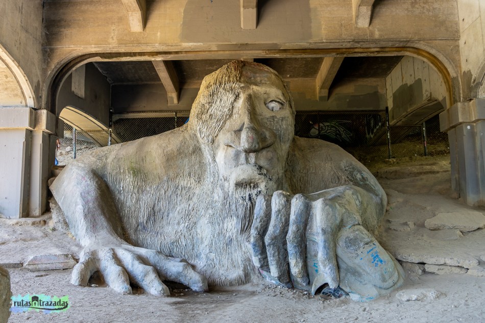 Al salir del parque pedimos un Uber y nos fuimos a ver el troll de la ciudad. El Fremont Troll es una escultura que fue creada bajo un puente del barrio Fremont con el fin de sacar a las personas sin hogar que vivían bajo el puente y evitar su regreso. Es una escultura bastante grande, mide 18 pies (5 metros y medio) de alto y pesa 13,000 lbs (5,500 kilos). La idea del troll se derivó del folclor escandinavo, especialmente el noruego. Allí estuvimos unos 15 minutos en lo que esperábamos a que personas se salieran del troll para nosotros poder tirar varias fotos.