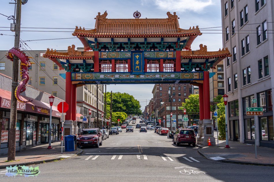 El Chinatown, propiamente llamado Chinatown International District, no estaba muy lejos así que me fui caminando hasta llegar a él. El Chinatown original se ha expandido y dentro de sus límites quedaron Japantown y Little Saigon. Es por esto que se le conoce como Distrito Internacional. El histórico y típico arco me dio la bienvenida al barrio chino. El arco chino o puerta del barrio chino fue inaugurado en el 2008 y tuvo un costo de medio millón de dólares. Cuenta con 8,000 lozas de cerámica fue fueron traídas directamente del sur de China.