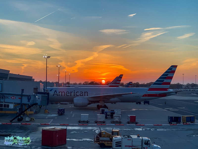 Con resultados de la prueba de Covid, código QR para poder abordar el avión (requisitos del gobierno de Jordania por la pandemia) y pasaporte en mano me dirigí rumbo al aeropuerto internacional Chicago O’hare que era de donde salía mi vuelo. Decidí irme en la guagua (autobús) de Milwaukee al aeropuerto para ahorrarme el costo del estacionamiento. Originalmente yo compré un vuelo directo con la aerolínea Royal Jordanian pero ese vuelo lo cancelaron y me dieron uno con escala en el aeropuerto internacional John F. Kennedy de Nueva York. Con los nuevos vuelos iba de Chicago a New York con American Airlines, y de New York a Ammán con Royal Jordanian.