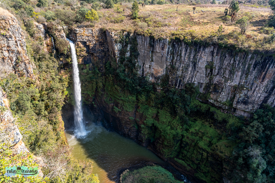 Y ya tan solo nos quedaba un lugar en la ruta y este era la Mac Mac Falls que se encuentra a 25 minutos de God’s Window. La entrada a Mac Mac Falls nos costó R50. Originalmente, la cascada Mac Mac Falls tenía un único caudal, pero los mineros utilizaron dinamita en ella con la esperanza de encontrar oro, lo que provocó que ahora el agua caiga en dos corrientes. Tiene una caída de 65 metros y en la base hay una poza bastante grande y profunda. Para poder apreciar mejor la cascada, se construyó una plataforma al borde del cañón y desde ahí fue que nosotros la pudimos observar detalladamente. Bajar hasta la poza de la cascada está prohibido, pero a unos 2 kilómetros de distancia se encuentra Mac-Mac Pools. Allí se puede nadar, refrescarse bajo la sombra de los árboles, hacer un pícnic y relajarse.