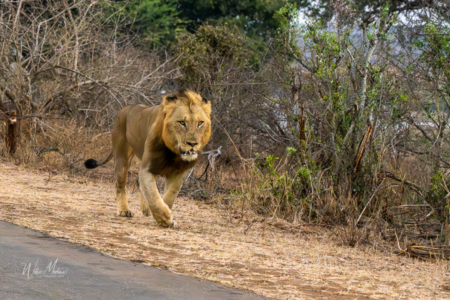 Tan pronto salimos de Lower Sabie, a pocos minutos, vimos tres leones caminando hacia nosotros. Que mejor forma de comenzar el día que encontrando esos tres hermosos ejemplares de andaban como en una misión, uno detrás del otro. Estacionamos el carro hacia un lado y esperamos que se acercaran más a nosotros para tomarle las fotos. Y no éramos los únicos, muchos otros carros estaban haciendo lo mismo que nosotros.